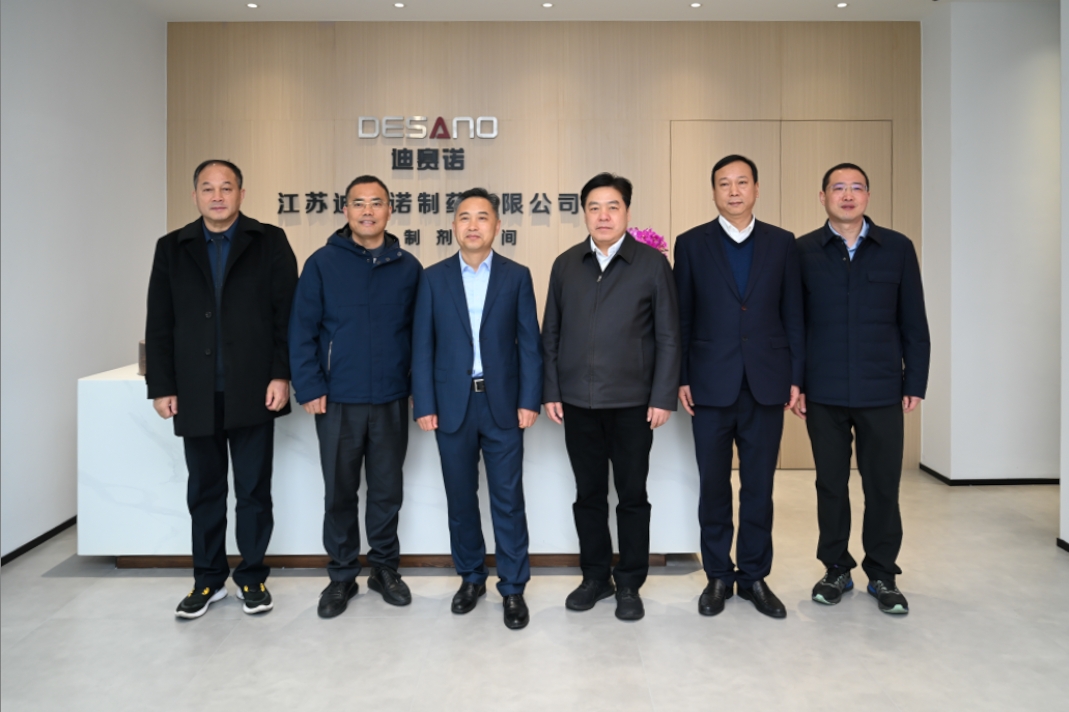 2024年2月20日上午,溧阳市市长周永强、市委副书记庄松年、市人大副主任夏国中、市政协副主席唐华新、溧阳高新区副主任马立峰等一行走访慰问了江苏迪赛诺制药有限公司。在参观了公司新建综合外用制剂车间后,市领导对我司在2023年生产经营取得的成绩表示祝贺。
